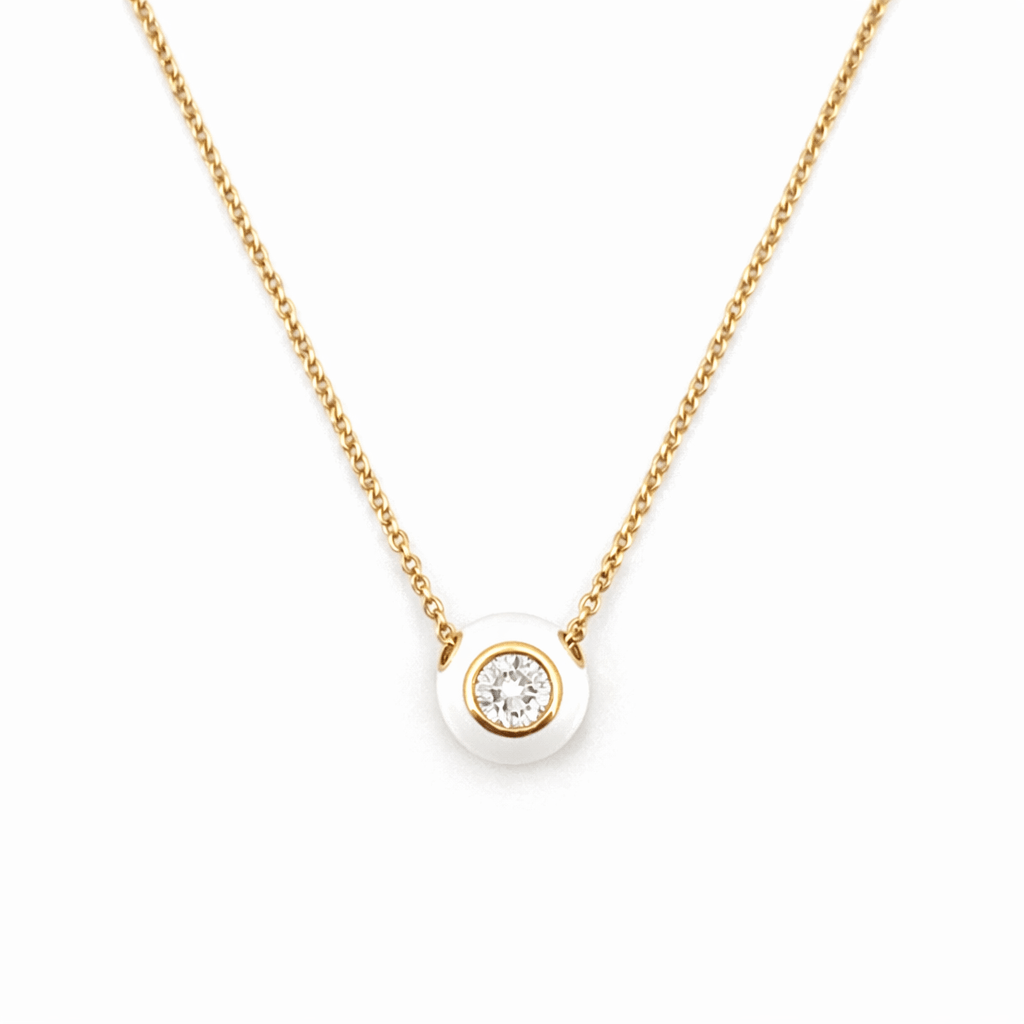 Up for sale we have a beautiful 14K Gold White Enamel Round Dome Pendant Necklace.