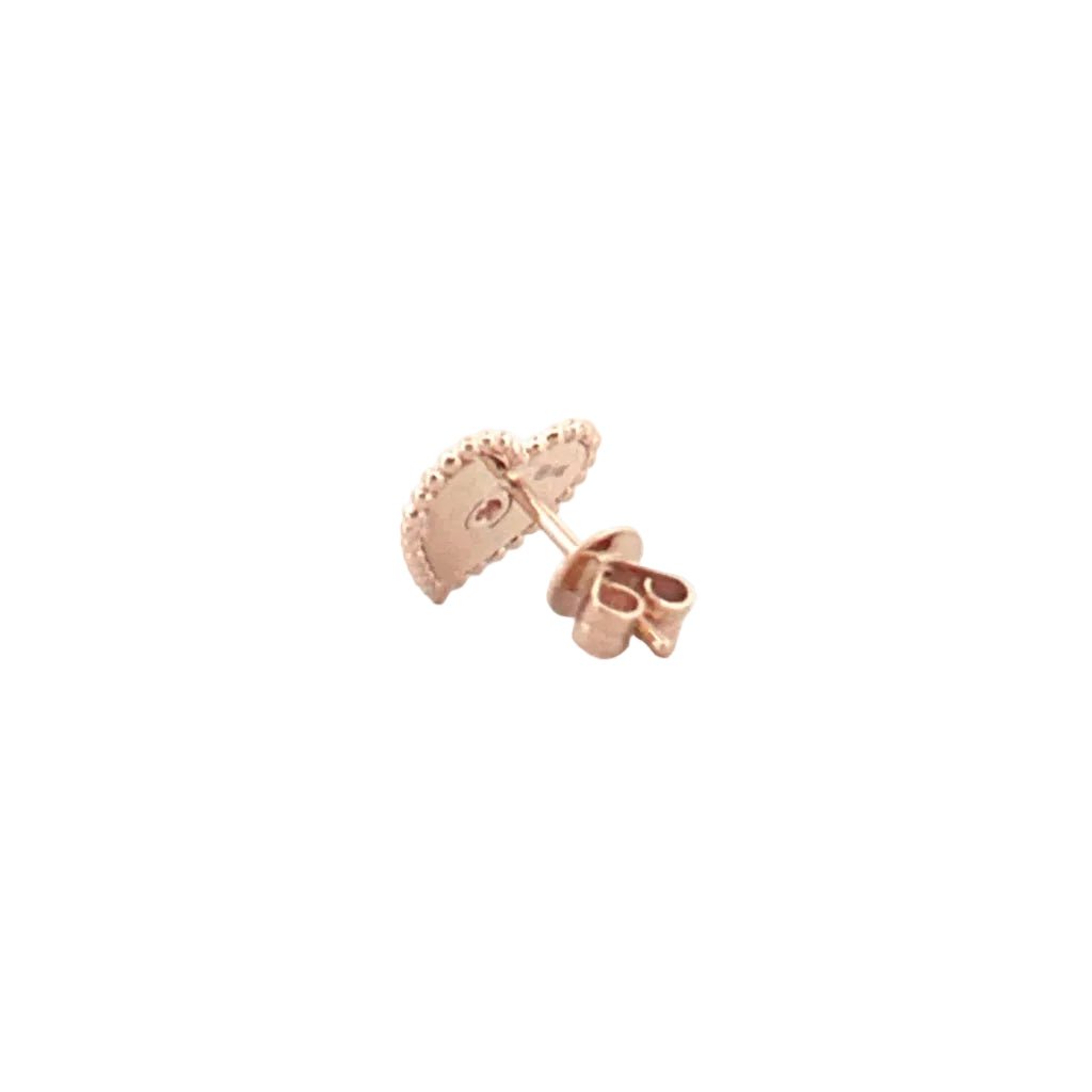 14K Gold Fluted and Beaded Diamond Bezel Heart Earrings