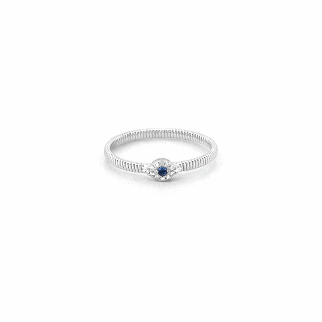 Up for sale we have a beautiful 14K Gold Ribbed Sapphire and Diamond Evil Eye Band.
