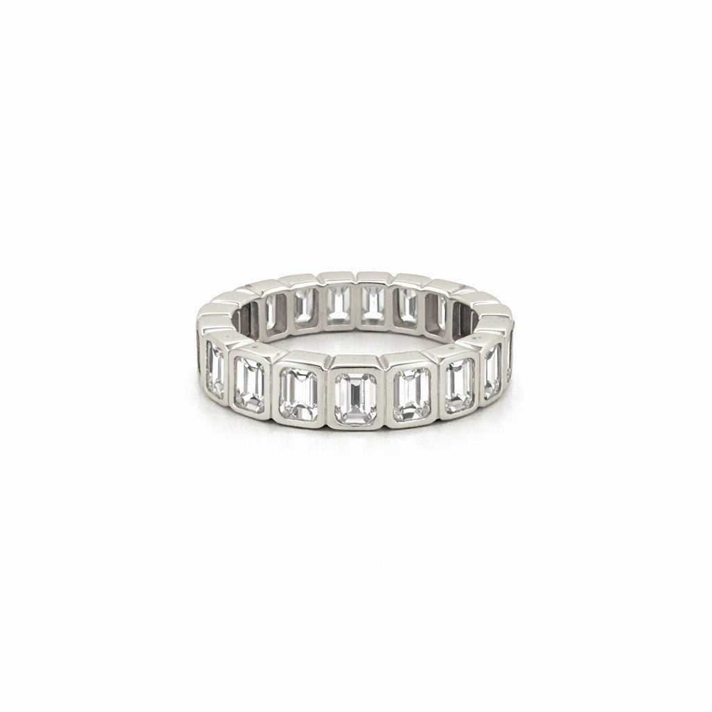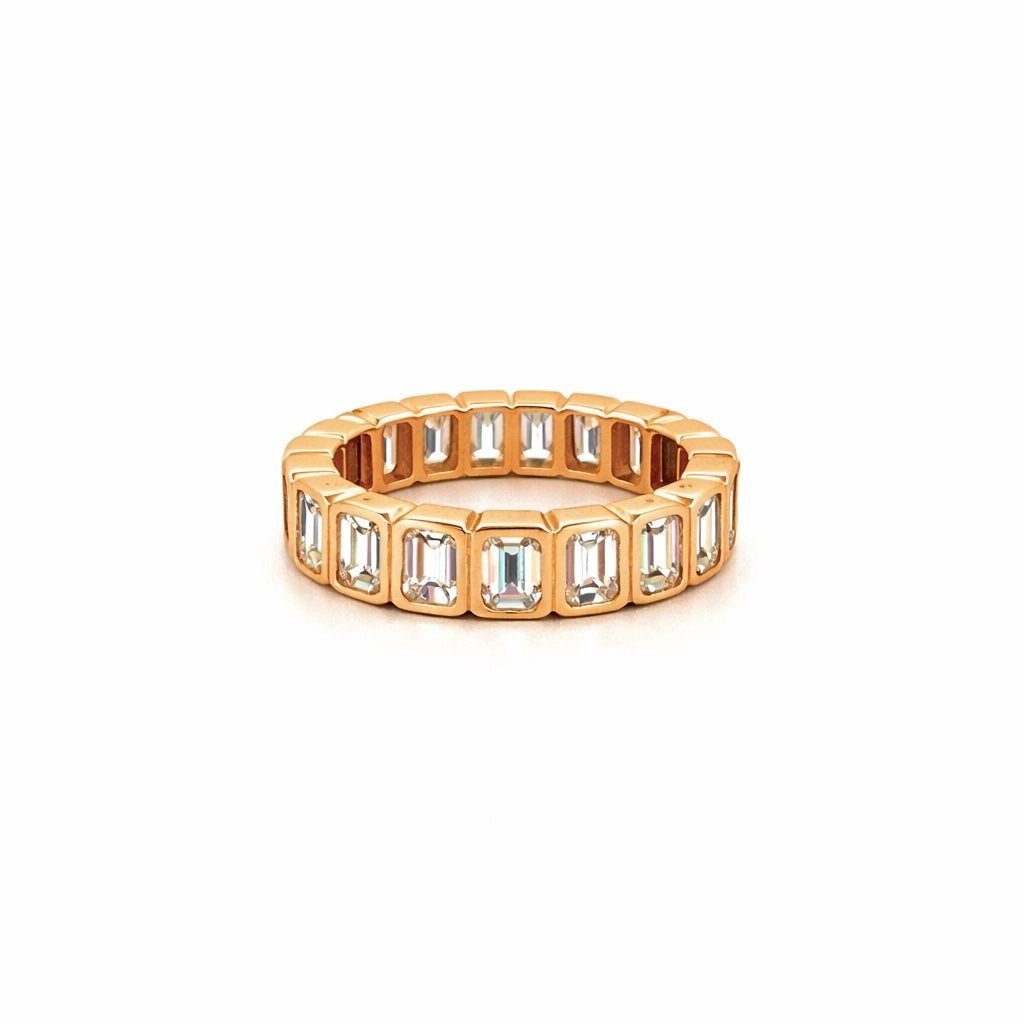 14K Gold 4.8MM Emerald Bezel Natural Diamond Eternity Band
