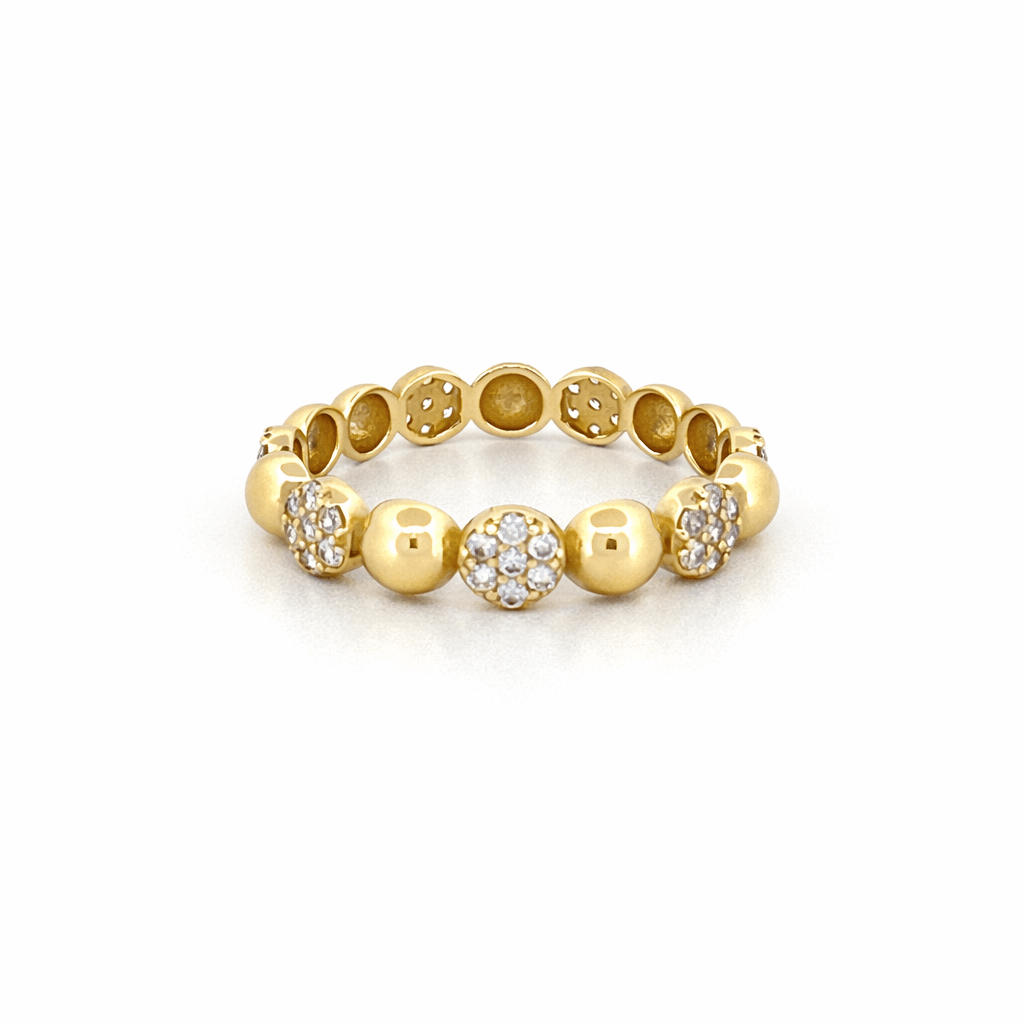 Up for sale we have a beautiful 14K Gold Bead and Pave Diamond Eternity Band.