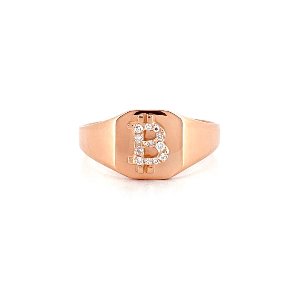 14K Gold Diamond Bitcoin Signet Band