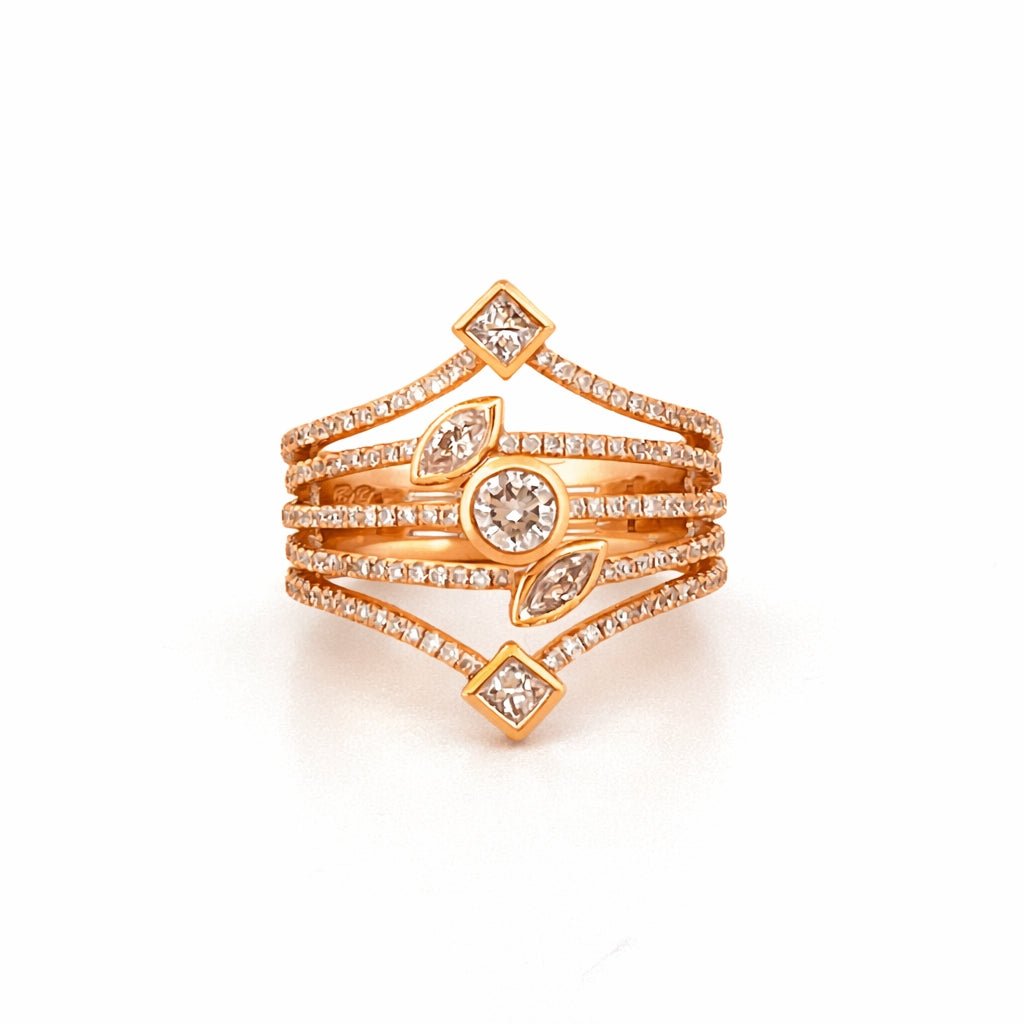Up for sale is a beautiful 14K Gold Five Row Tri Shape Fashion Band.