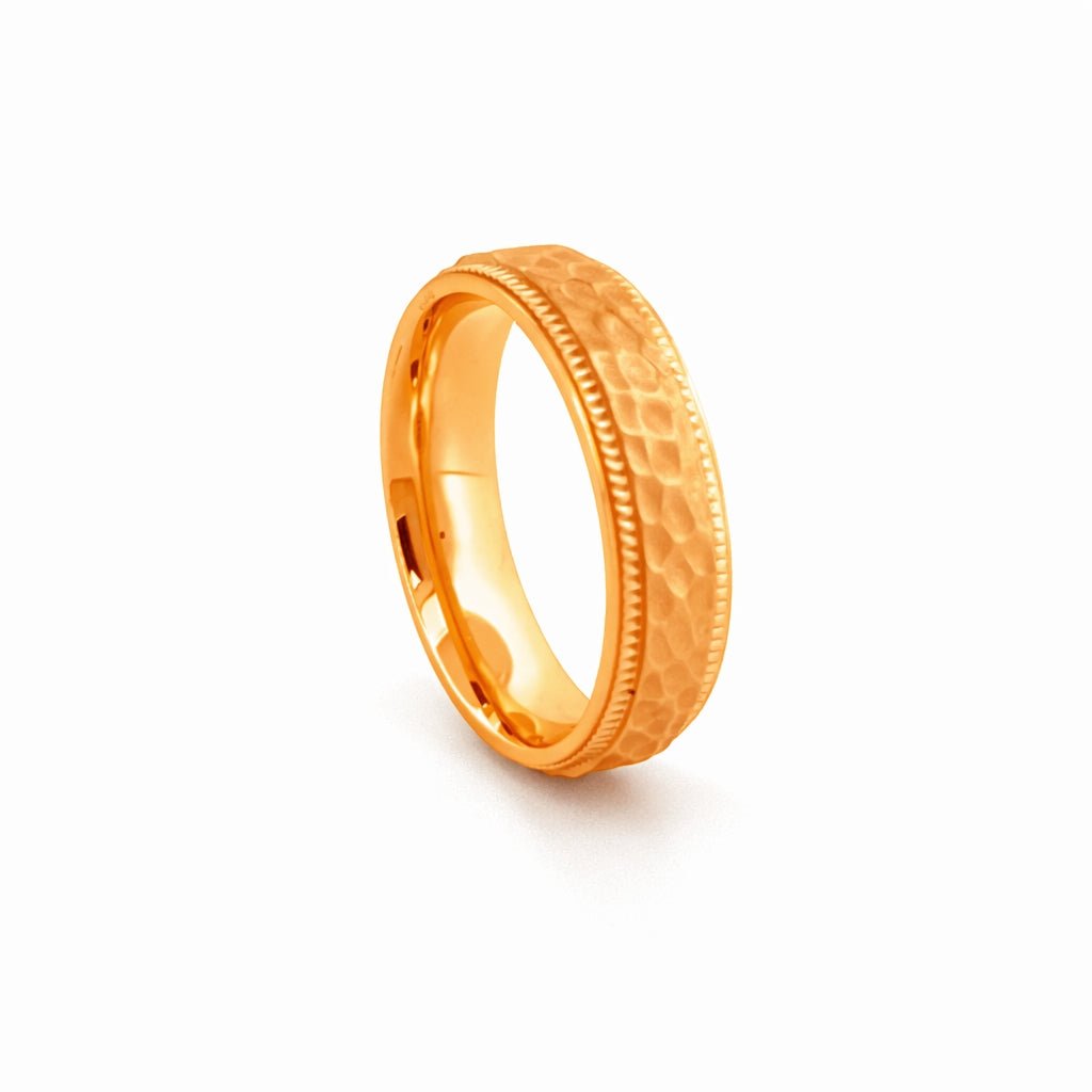 14K Gold Hammered and Dotted Edge Mens Band