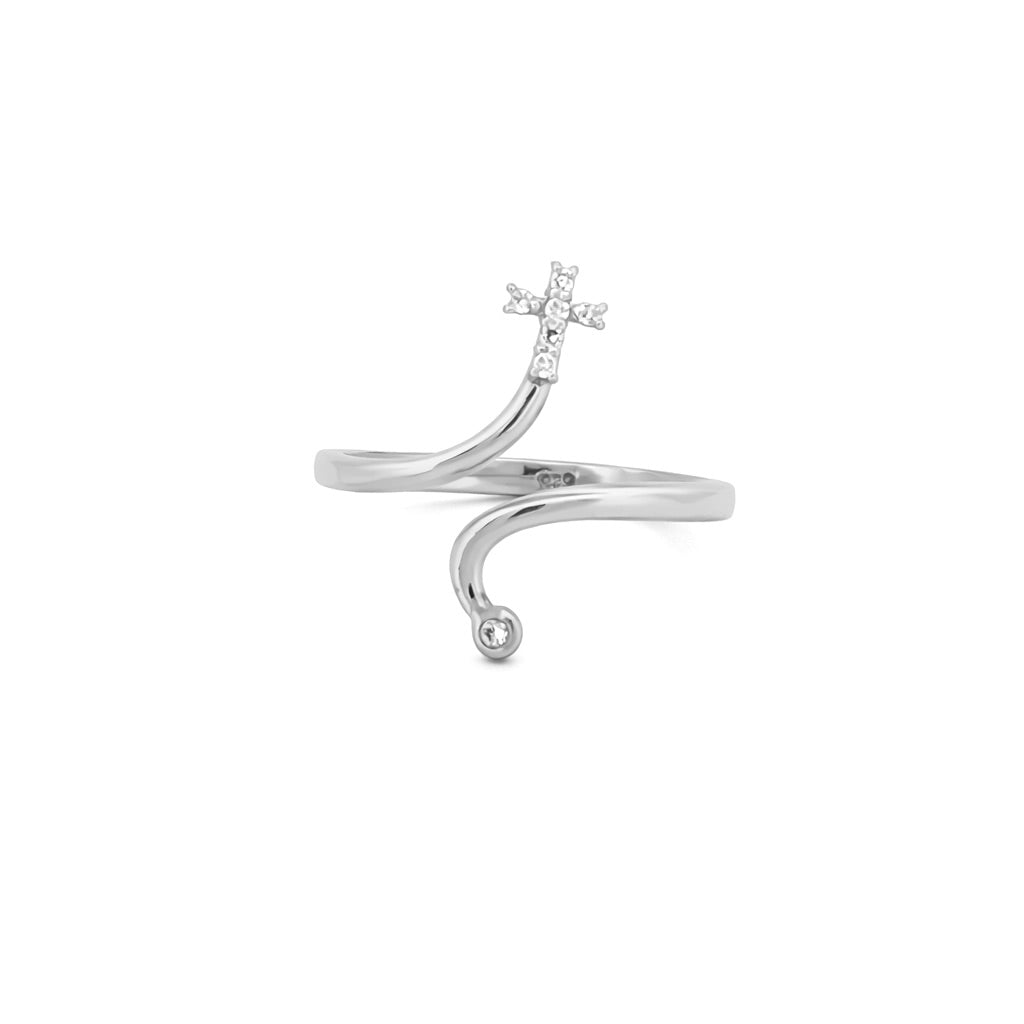 14K Gold Open Cross and Bezel Diamond Ring