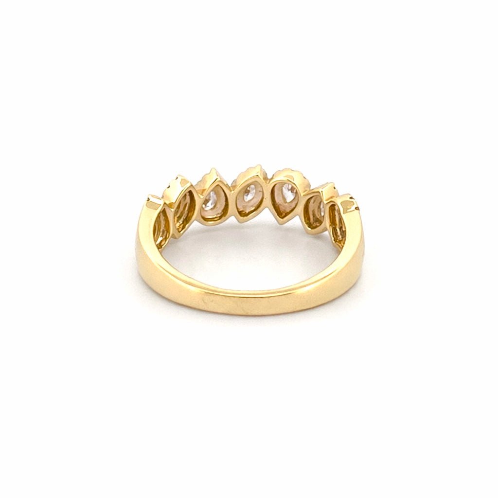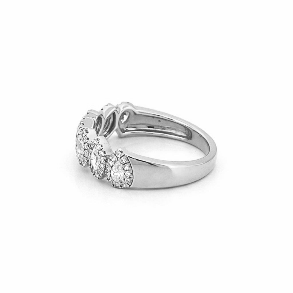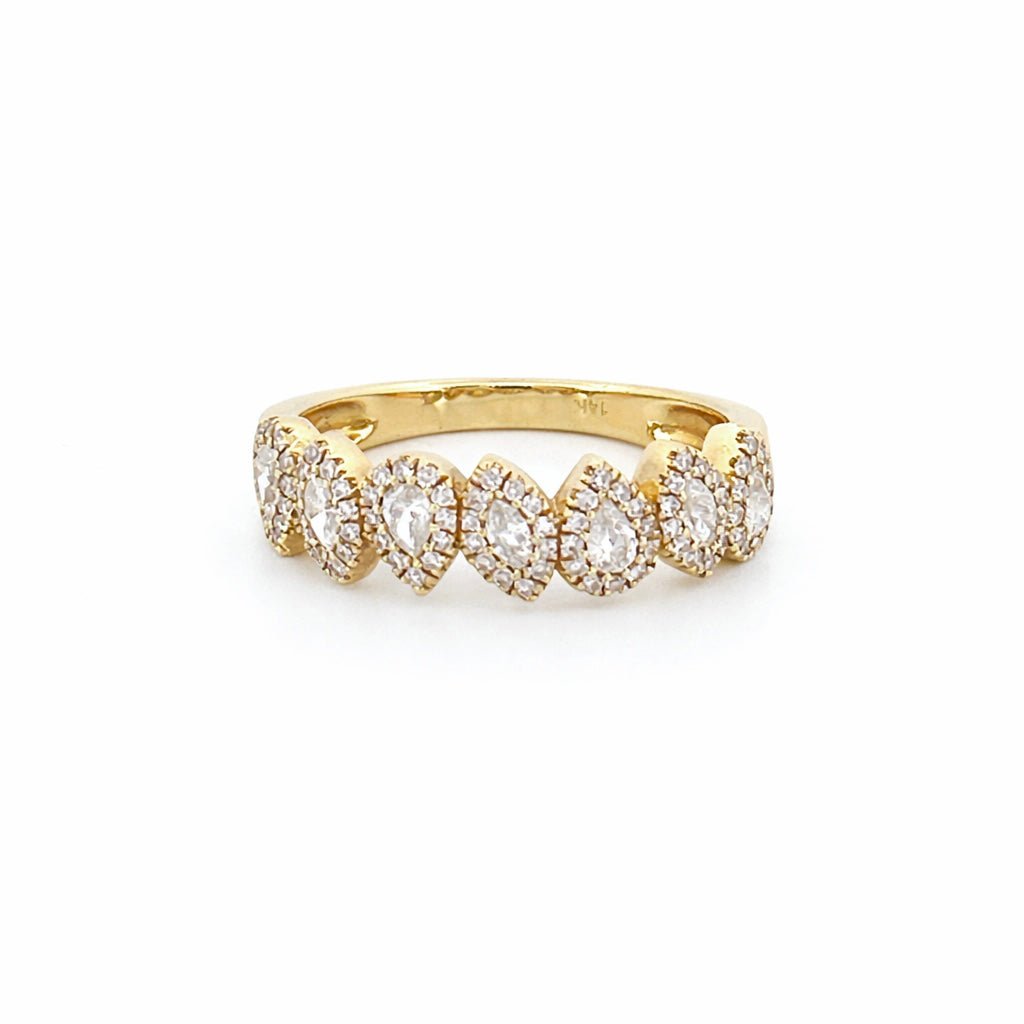 14K Gold Pear and Marquise Diamond Halo Band