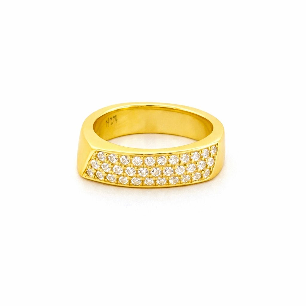 14K Gold Slanted Three Row Flat Diamond Pave Band
