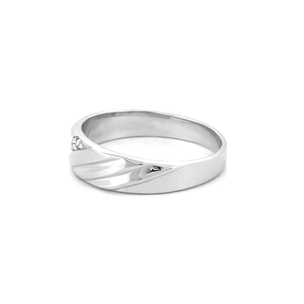 14K Gold Striped Slant Diamond Mens Band