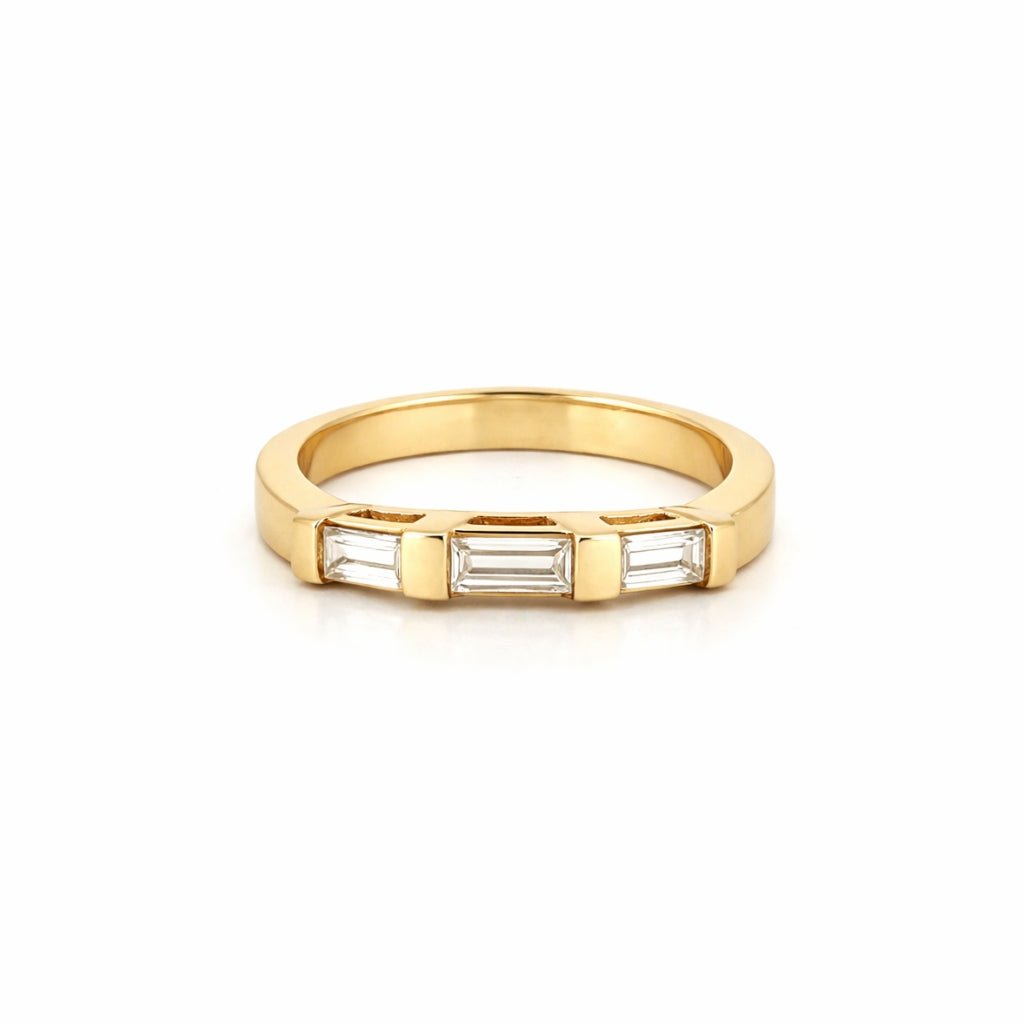 14K Gold Three Baguette Thick Prong Diamond Band