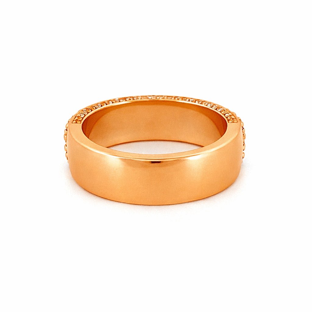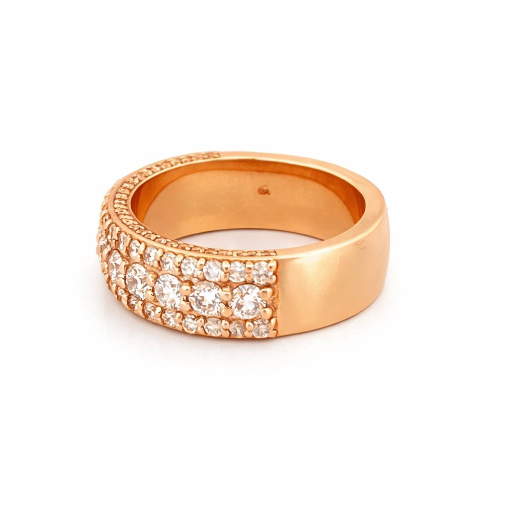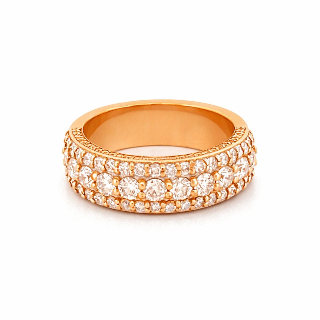 14K Gold Three Row Diamond Mens Band w/ Diamond Walls