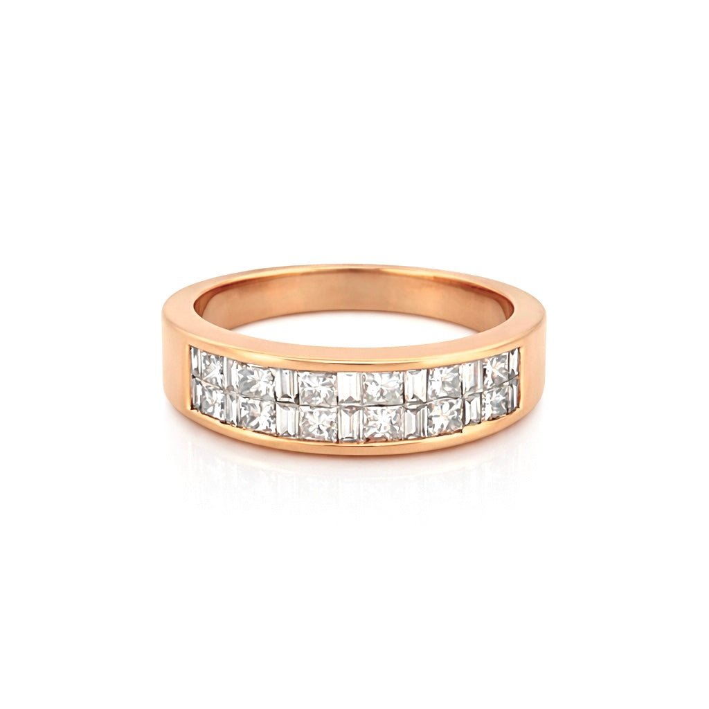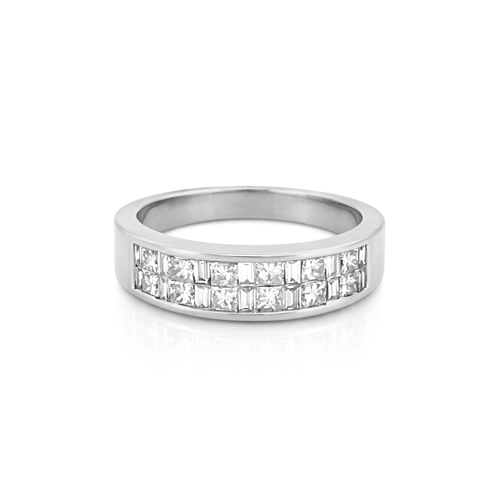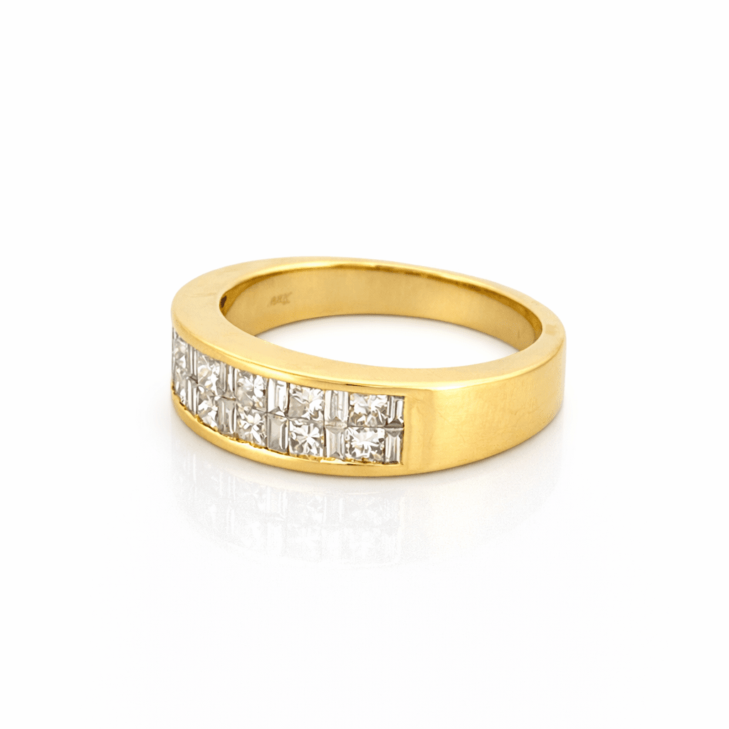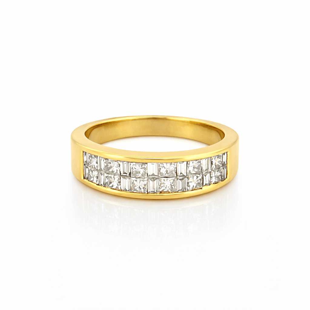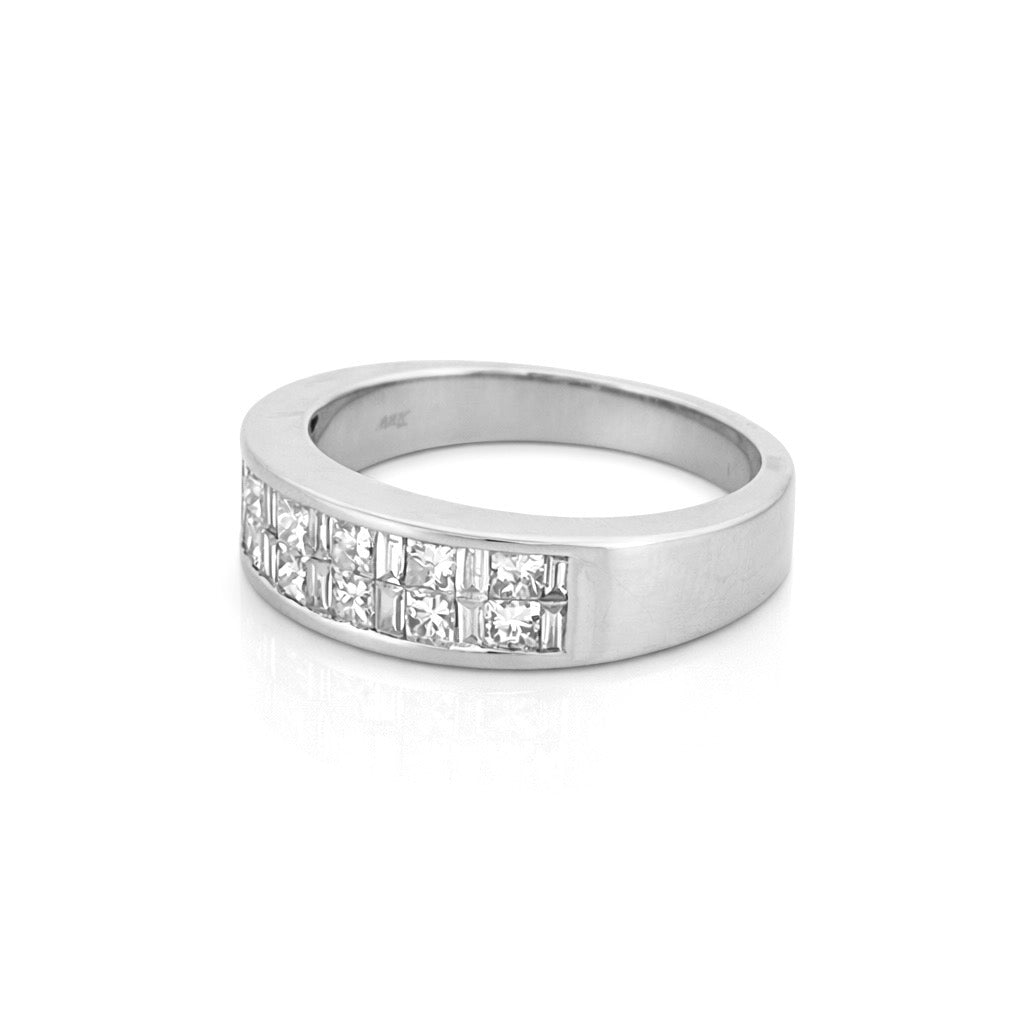 14K Gold Two Row Invisible Princess and Baguette Diamond Band