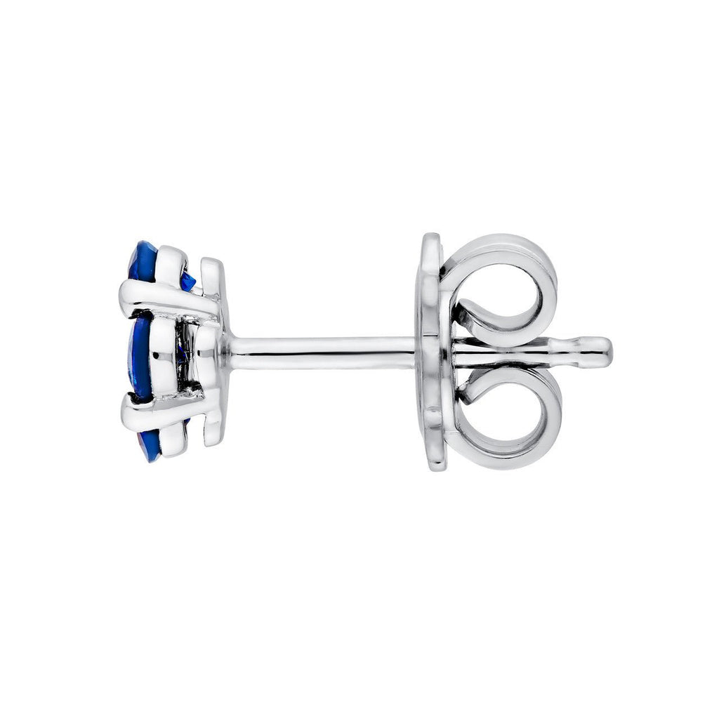 14K Gold 2.5MM Sapphire and Diamond Flower Cluster Stud Earrings
