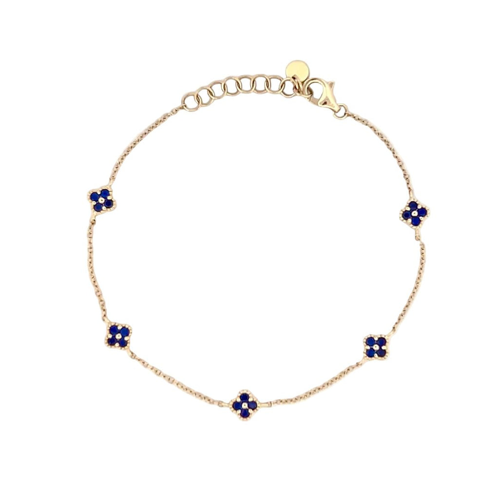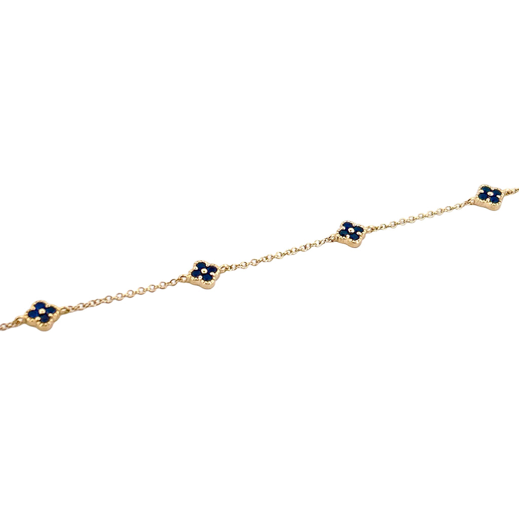 Up for sale we have a beautiful 14K Gold Clover Sapphire Station Bracelet.