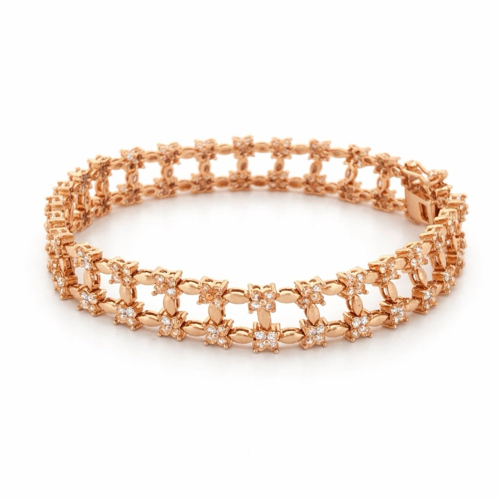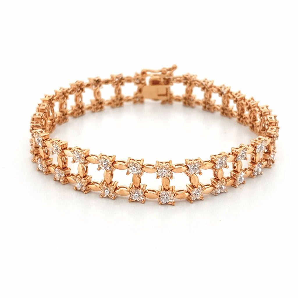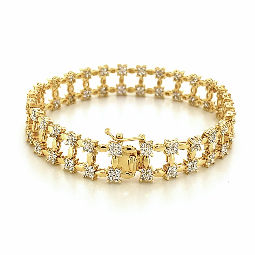 14K Gold Diamond Flower Shape Rail Bracelet