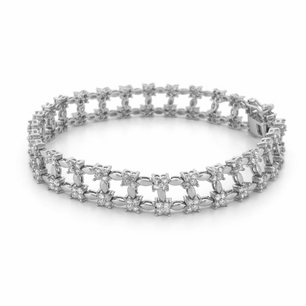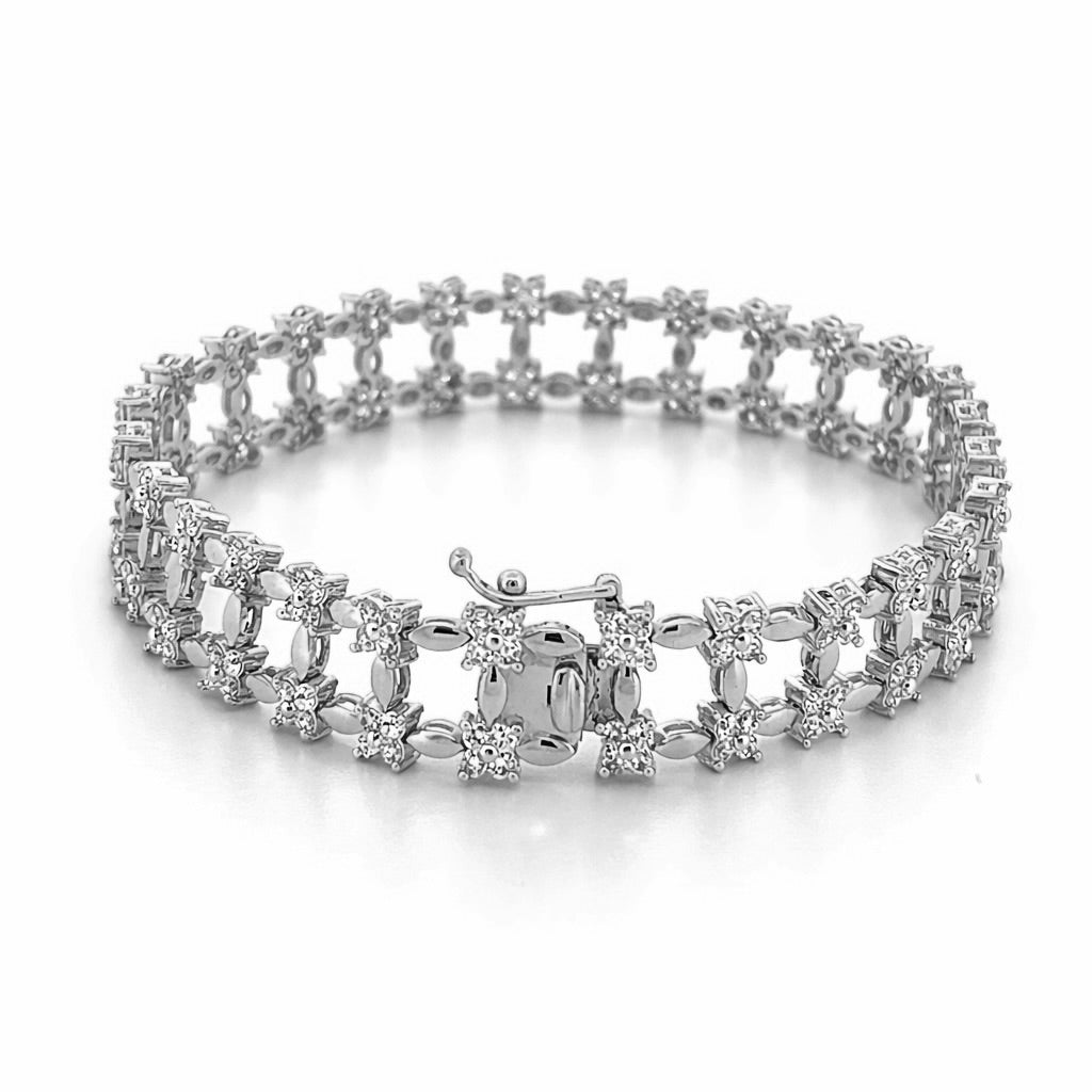 Up for sale we have a beautiful 14K Gold Diamond Flower Shape Rail Bracelet.