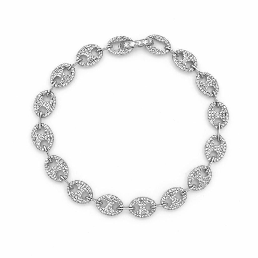 14K Gold Flat Diamond Pavé Mariner Link Bracelet