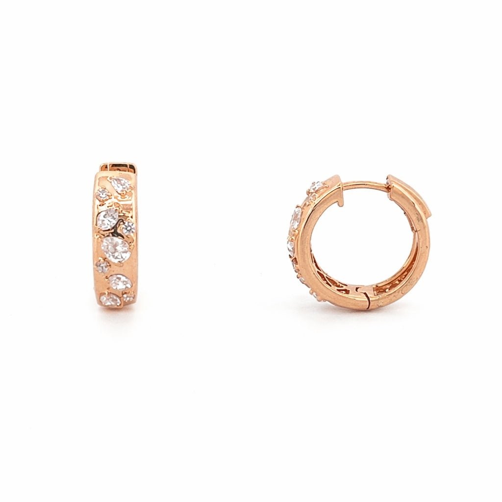 14K Gold Multi Shape Diamond Scatter Huggie Earrings