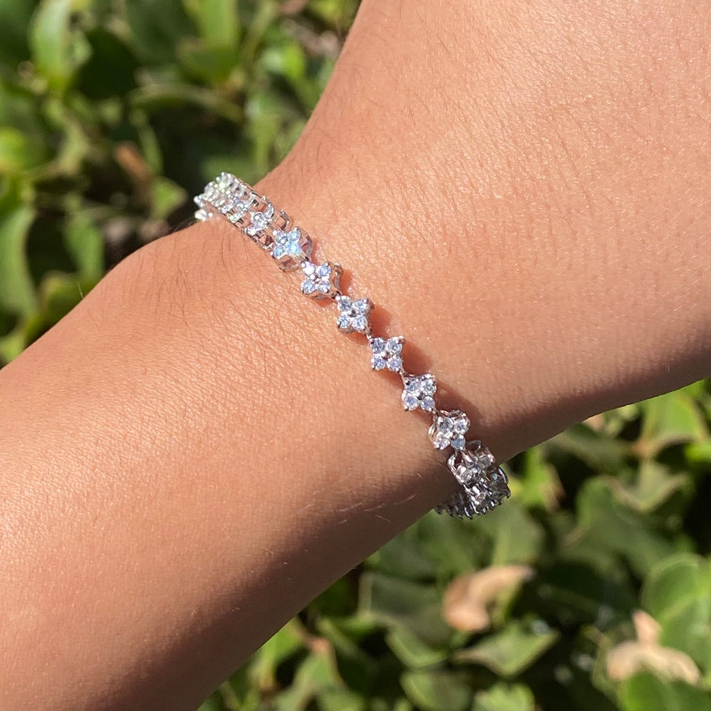 14K Gold Natural Flower Diamond Tennis Bracelet