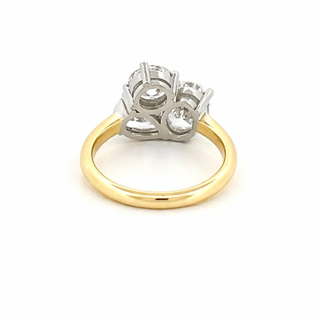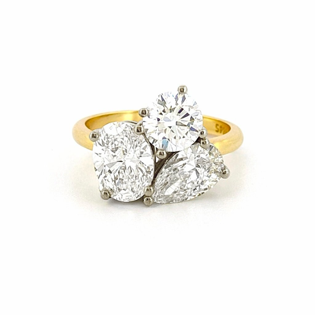 14K Two Tone Gold Three Lab Grown Pear Oval Round Diamond Engagement Ring