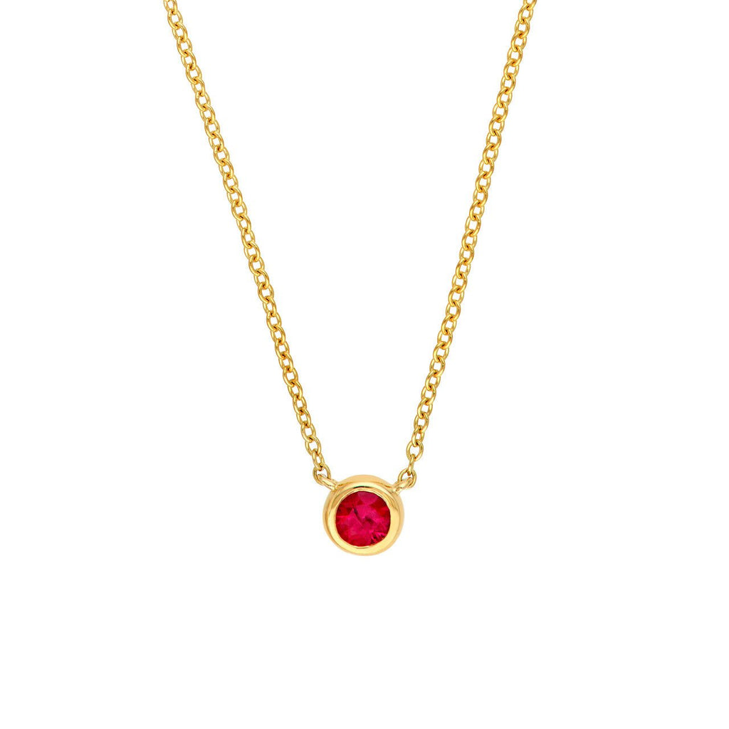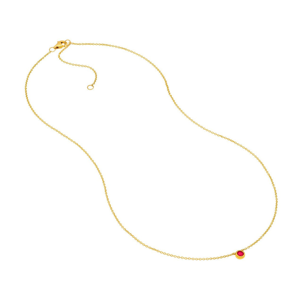 14K Gold 3MM Ruby Bezel Pendant Necklace