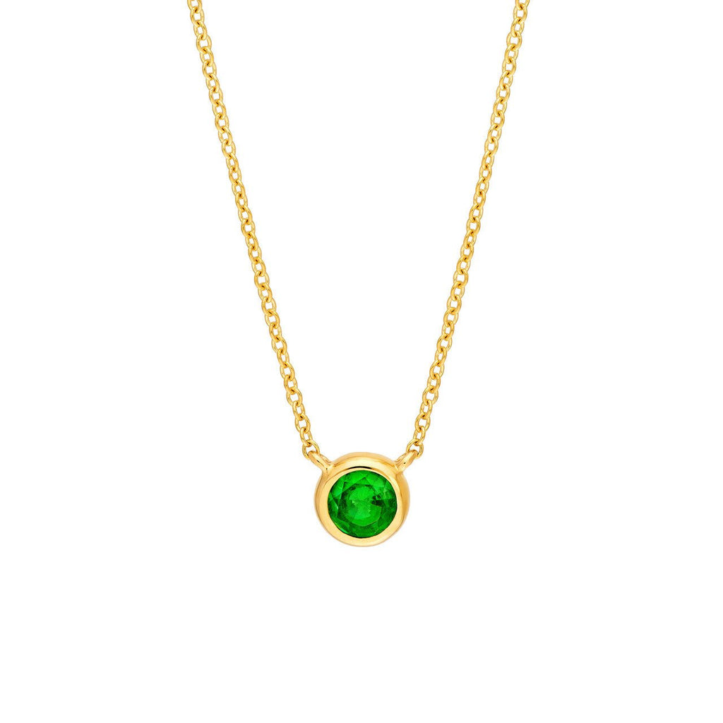 14K Gold 4MM Tsavorite Bezel Pendant Necklace