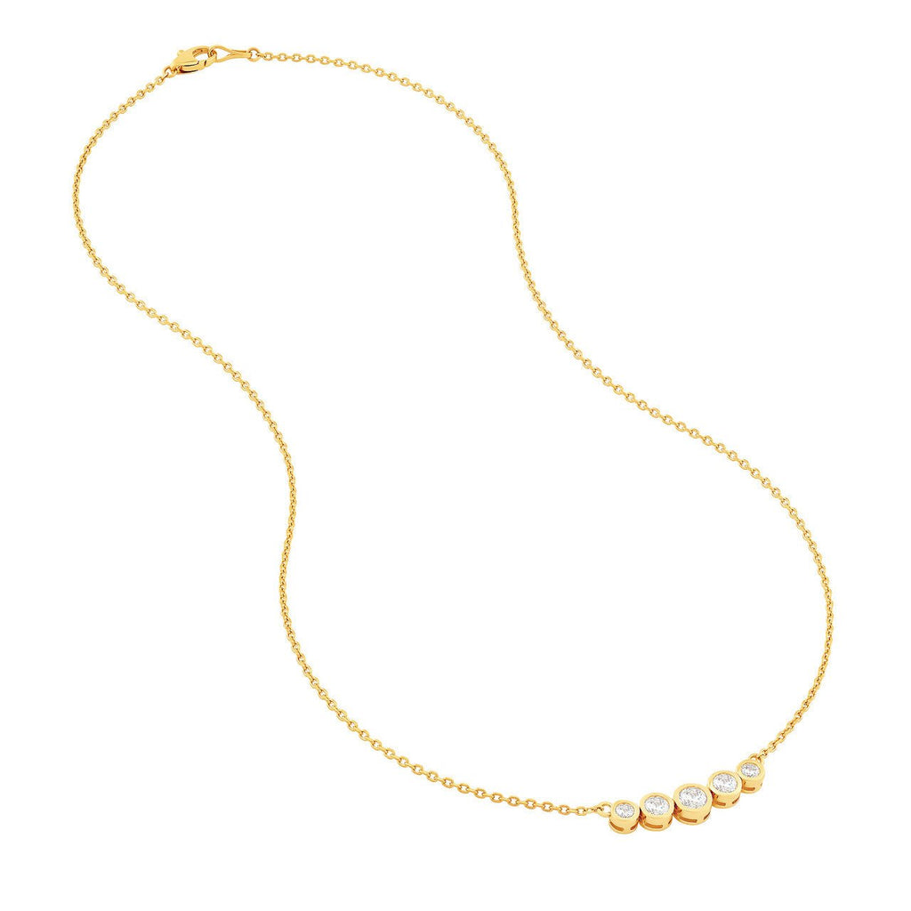 14K Gold 5 Stone Graduated Diamond Bezel Necklace