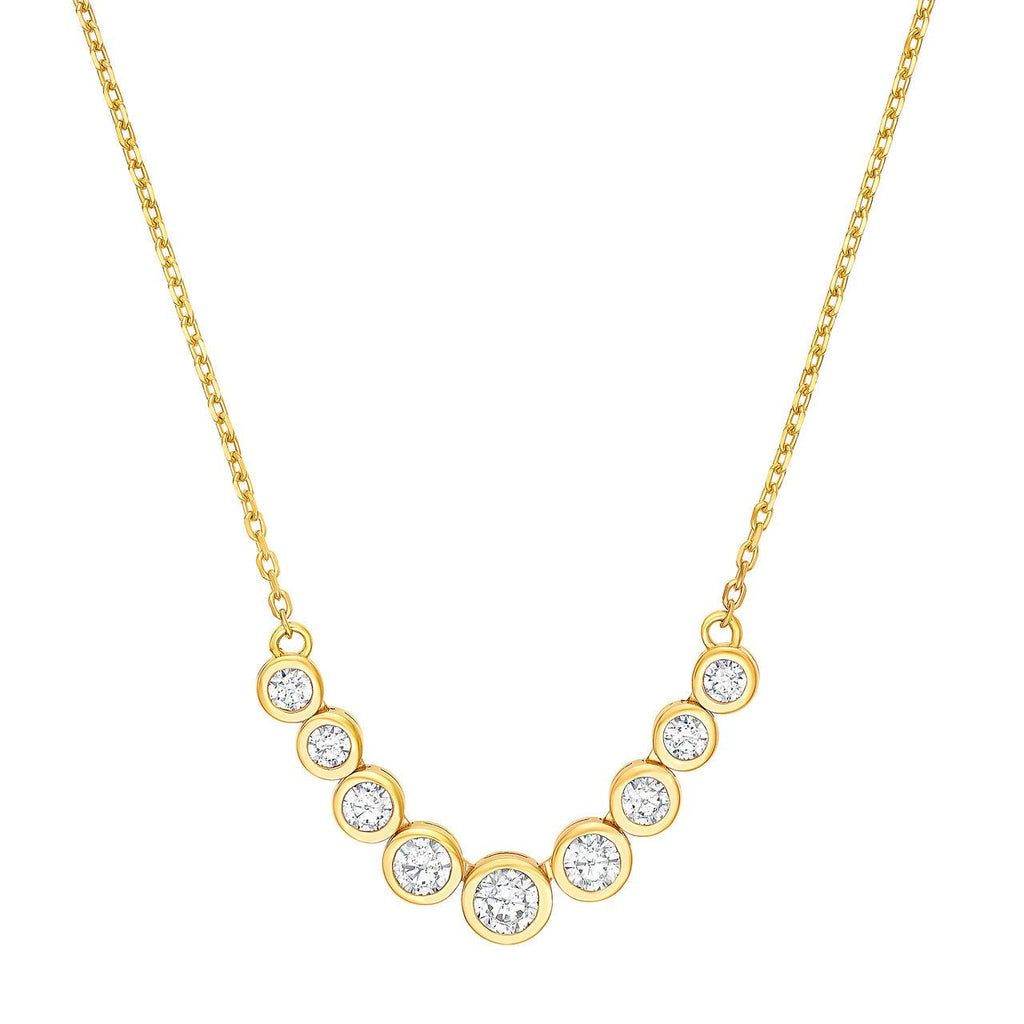 14K Gold 9 Stone Graduated Diamond Bezel Necklace