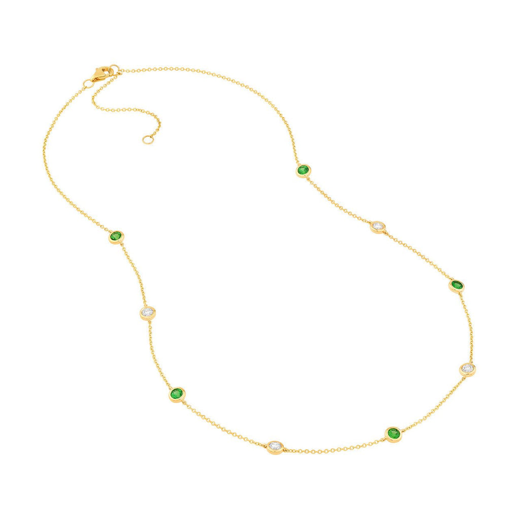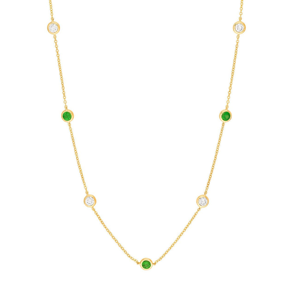 14K Gold Diamond and Emerald Station Bezel Necklace