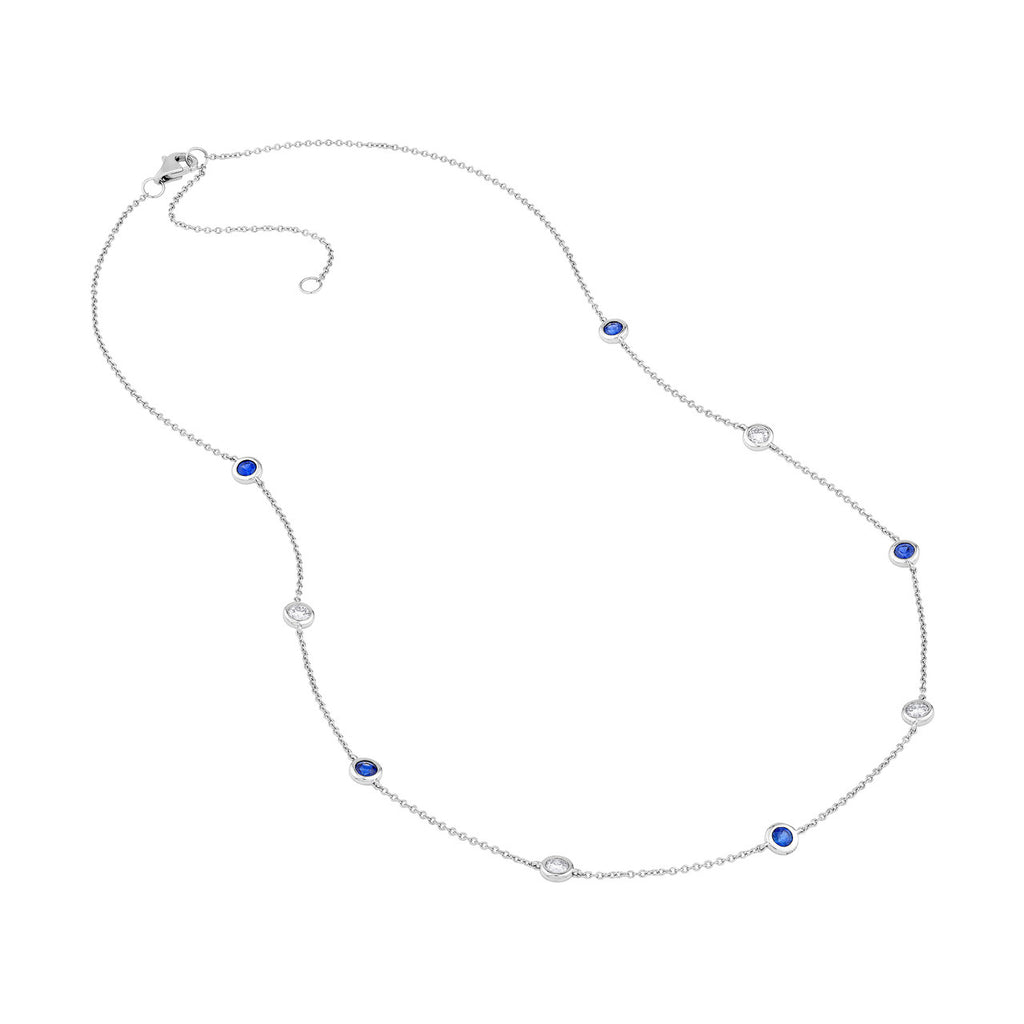 14K Gold Diamond and Sapphire Station Bezel Necklace