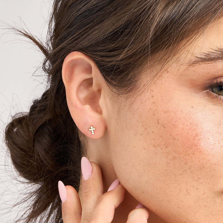 Up for sale we have a beautiful 14K Gold Mini Diamond Cross Stud Earrings.